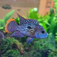 - Striking Coloration: Andinoacara rivulatus displays a beautiful mix of green and blue colors on its body, along with contrasting iridescent spots on its fins, making them visually captivating and elegant in the aquarium.