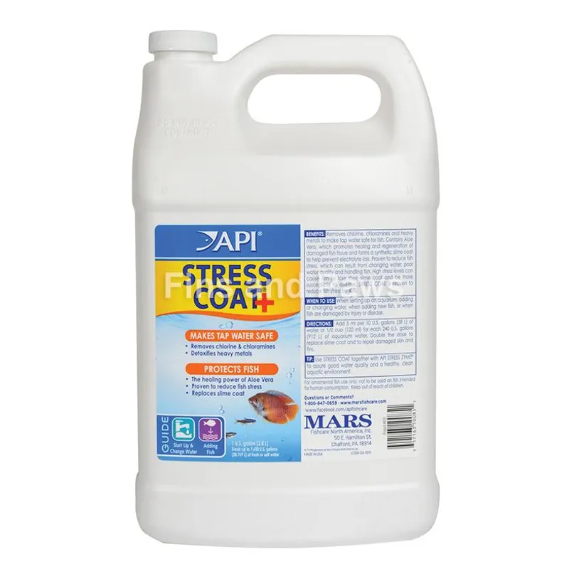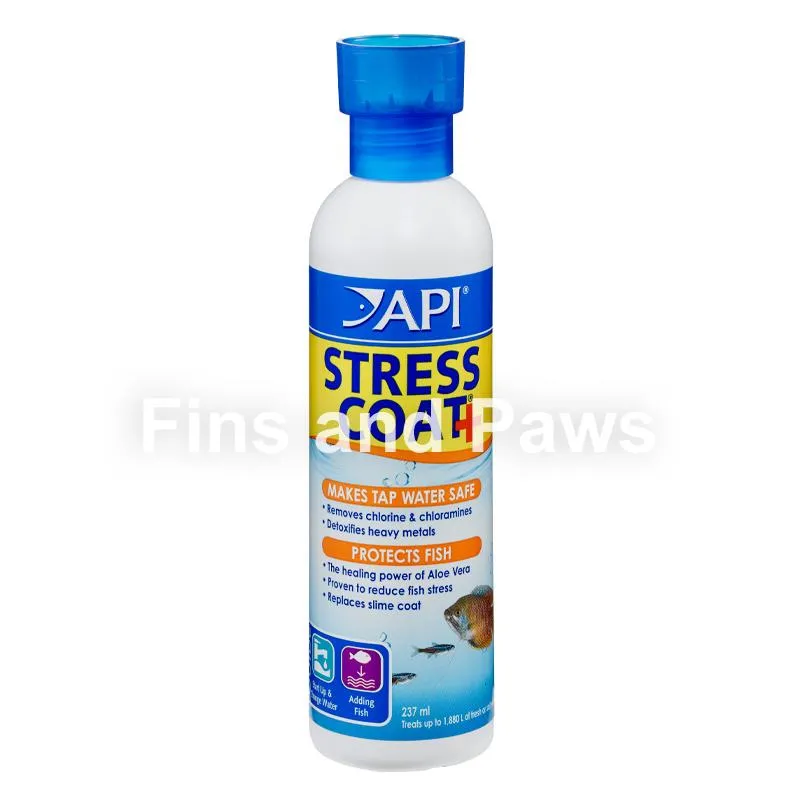 API® Stress Coat makes tap water safe for fish by removing harmful chemicals from tap water, and contains the healing power of Aloe Vera to reduce fish stress by 40% and to heal damaged tissue and wounds. API® Stress Coat also reduces electrolyte loss in your fish, and should be used when:
