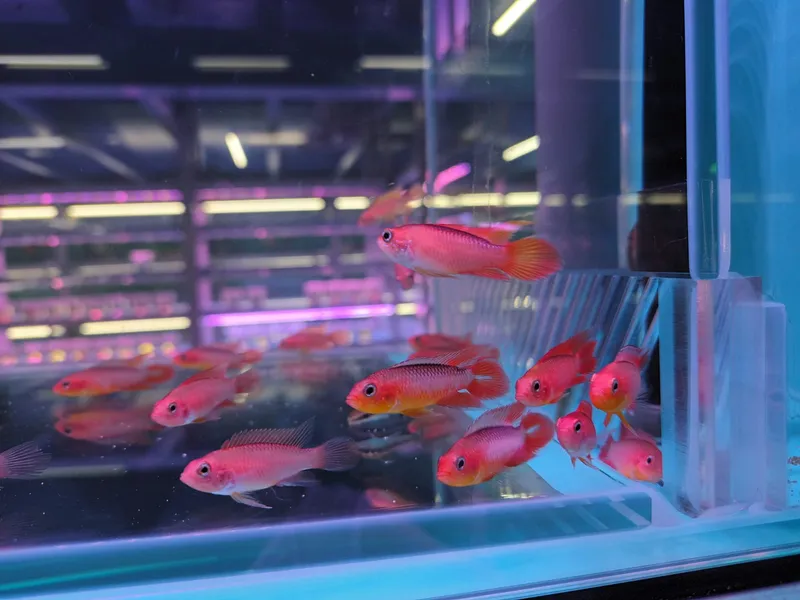 "Experience the stunning beauty of Apisto Agassizii var Gold 'Fire Red' fish! These vibrant freshwater fish will add a pop of color to your aquarium. Shop now!"