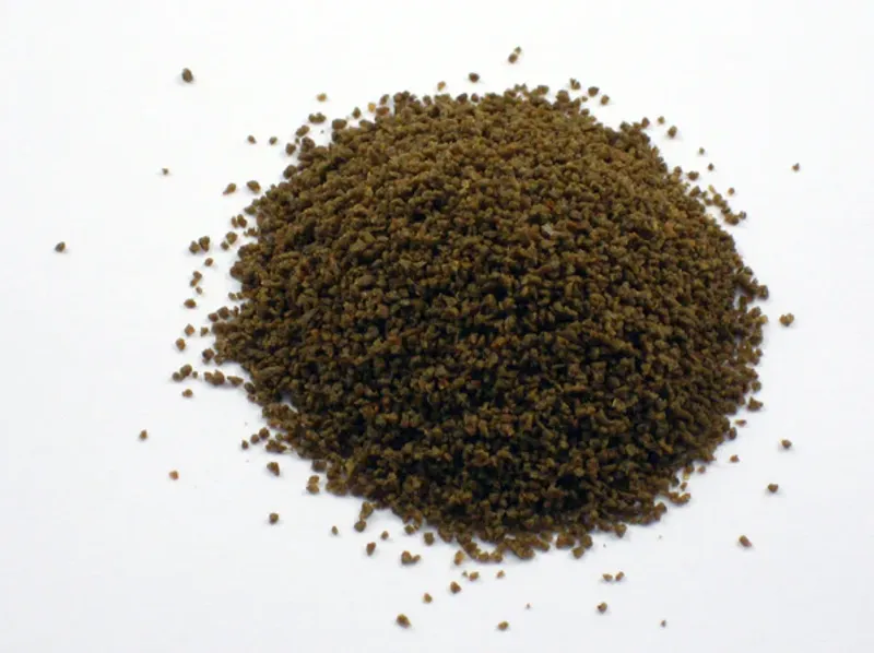 Composition: Fish and fish derivatives, cereals, crustaceans, derivatives of vegetable origin, yeast, Sophora flavescens 2 % (matrine/oxymatrine)
