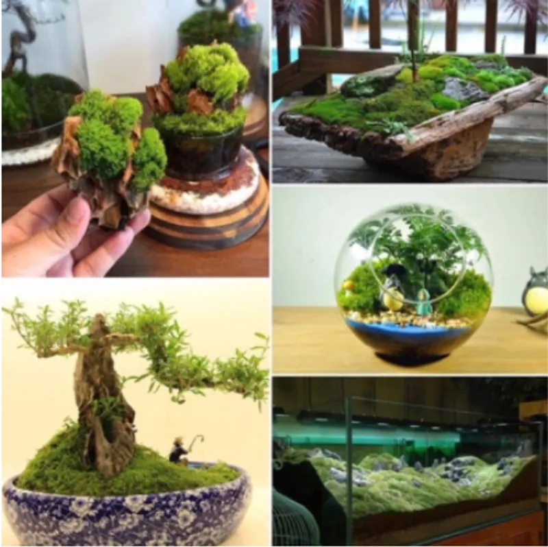 -Blossoming moss: Good for Bonsai or other plants decoration as well as open DIY bottle, terrarium, vivarium and palladium. They can resist less moist than the star moss and do keep them in a open concept tank/bottle