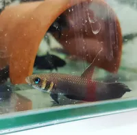 Males are more colourful than females, and develop extended unpaired fins. The opercular bars are usually orange-red and more well-defined in males, golden-yellow in females.