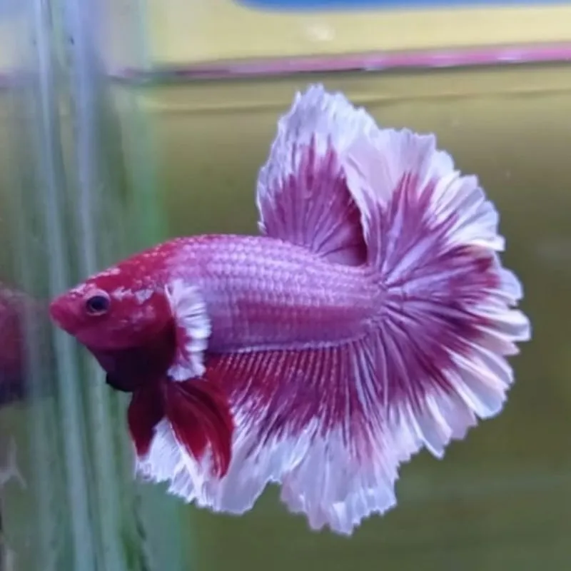 2. **Fins**: The defining characteristic of this variant is its large pectoral fins, known as "dumbo ears" due to their size and shape, which resemble elephant ears. These fins are often a contrasting white or light color, adding to the fish#@#s striking look. Additionally, the tail fin spreads to a full 180 degrees when fully flared, resembling a half-moon, creating a dramatic display.