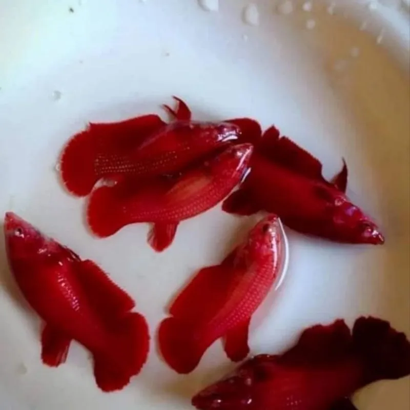 6. **Diet**: Super Red Plakat Bettas are carnivorous and thrive on a diet of high-quality betta pellets, supplemented with live or frozen foods such as brine shrimp, bloodworms, and daphnia. A varied diet helps maintain their vibrant coloration and overall health.