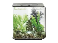 You'll find the biOrb FLOW 15 MCR Aquarium is a really easy aquarium to set up and own. Everything you need to start your aquarium is included in the box. It uses the proven biOrb filtration system and is equipped with multi-color remote controlled lighting that can be lit by any of the sixteen pre-set colors. You can relax as the aquarium gently fades through the entire spectrum of colors or select the day and night setting for a more natural scene. You can also control the brightness, making these controls a joy to use. The biOrb FLOW 15 is ideal for keeping small fish or shrimp and is compact enough to place on your desk or in a small space. Most aquariums use small box filters and/or smooth gravel which easily clog with dirt. Like all biOrbs, the biOrb FLOW 15 uses special ceramic media to provide biological filtration, which has a surface area equivalent to the size of a soccer field. Any excess waste is collected and held in a filter cartridge at the base of the biOrb. To maintain your biOrb FLOW 15 all you do is simply replace the filter cartridge every four weeks and change a third of the water. For your peace of mind, the light and air pump are low voltage. The aquarium itself is made from acrylic which is ten times stronger than glass and backed by a 2 year warranty. You can enjoy all the technology of an advanced aquarium set up, supplied in one box, making the biOrb FLOW 15 MCR Aquarium the perfect aquarium for anyone new to fish keeping.