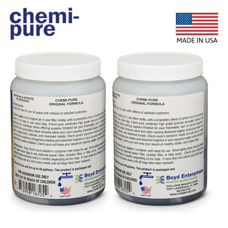 Transform your aquarium into a sparkling paradise with Chemi-Pure! This brilliant filter media diligently removes dissolved organics, ammonia, nitrite, and nitrate, ensuring your aquatic pals thrive in pristine conditions. Say goodbye to frequent water changes and hello to a stable pH, increased fish lifespan, and a tank free of odors and unwanted metals. It's like a spa day for your fish, every day!| Media Type | Absorption Filtration Media |