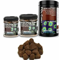 Rinse cubes very well but gently with water produced by reverse osmosis and deionization to remove any dust or fines. Place cubes in a plastic container with enough aged aquarium water to cover and allow to condition overnight. Place in an external filter system (do not fluidize), with slow to moderate flow. If a filter with flow control is available, that will be a plus. Always provide fine mechanical filtration ( i.e. filter floss ) ahead of the cubes to prevent fouling and behind them as well ( sandwiching them in filter floss is recommended ). XPort PO4 Cubes are powerful and can remove phosphate too fast, so that corals may close up in reaction. If that happens, simply remove half of the cubes and reduce phosphates more slowly. Initially use about 1 XPort PO4 Cube for every 20 U.S. gallons ( 76 L ) of system capacity. Measure the phosphate level. If it is high, then add 1 more cube per day until you reach your goals. As cubes exhaust, it will be necessary to replace them with newly conditioned cubes. Discard old used up cubes. Most systems will require a total of 1 to 3 XPort PO4 CubesTM total per 10 gallons ( 38 L ) of capacity.