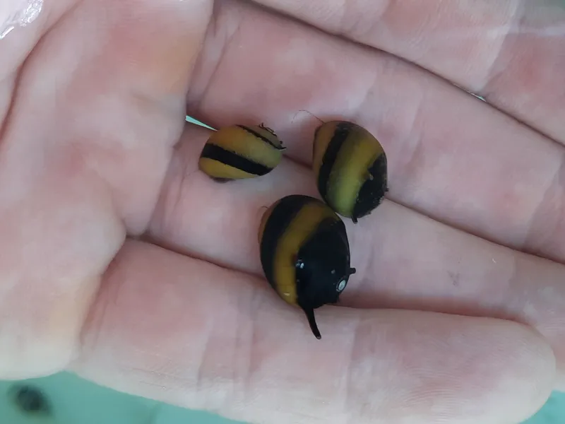 Care and Maintenance: Bumblebee Horned Snails are generally low-maintenance and easy to care for. Regular monitoring of water parameters, performing routine water changes, and ensuring proper filtration will help create a healthy environment for the snails. It's also important to provide adequate hiding places and surfaces for them to graze on, such as rocks, driftwood, and live plants.