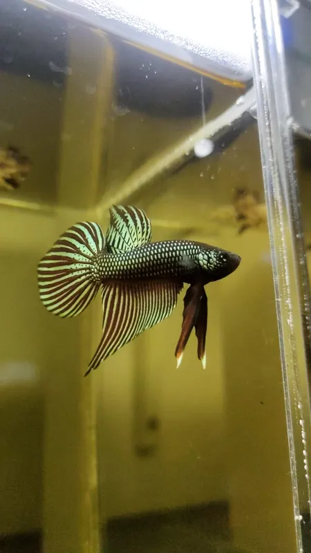 A copper hybrid variation of the wild Betta Smaragdina.