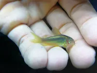 The Gold Stripe Cory Catfish (Corydoras sp. CW010), also known as the Gold Laser Cory Catfish, is a relatively newfound species that is native to Peru. It is rare in the aquarium hobby, but is in high demand due to its coloration of a metallic green body with a thick neon yellow stripe along its shoulder and side. It is a very animated, distinctively marked schooling fish that is perfect for the nano, community, and planted aquarium. It has not yet been scientifically described, but many experts believe that it is possibly a geographic color variant of Corydoras aeneus or C. melanataenia.
