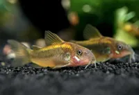 The Gold Stripe Cory Catfish is a very peaceful schooling fish that is compatible with most nano aquarium animals, including dwarf cichlids and angelfish. It might prey on some smaller dwarf shrimp, but is safe with larger shrimp and most other peaceful ornamental invertebrates. It is a classic scavenger and will inhabit and feed at the aquarium floor, which should be comprised of sand or smooth gravel. Very coarse substrate can damage its delicate barbels and underbelly. This fish is otherwise undemanding as it will accept most dry and frozen foods. It is adaptable to most tropical freshwater conditions as long as standard regular maintenance is performed and sudden changes are avoided.