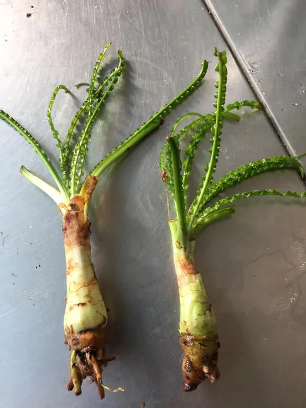 Crinum calamistratum from West Africa is a very graceful bulbous plant with dark-green, very narrow leaves. The curly leaves becomes 40-120 cm long. It forms smaller bulbs than the other Crinum-species, and requires less light.
