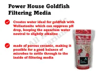 Power House Goldfish and killifish media creates ideal water conditions for goldfish, the media is made of wollastonite which helps to suppress pH drop, keeping water neutral and slightly alkaline. The media is made of porous ceramic, making a good balance of microbes to settle through the inside media.