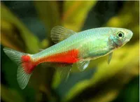 Appearance: These tetras have a sleek and streamlined body with a silver coloration. However, their distinguishing feature is their bright red or orange fins, especially the lower part of the tail fin, which gives them their name "Bloodfin Tetra."