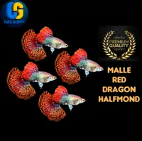 GUPPY RED DRAGON HALFMOND 1PAIR / 1MALLE + 1FEMALE