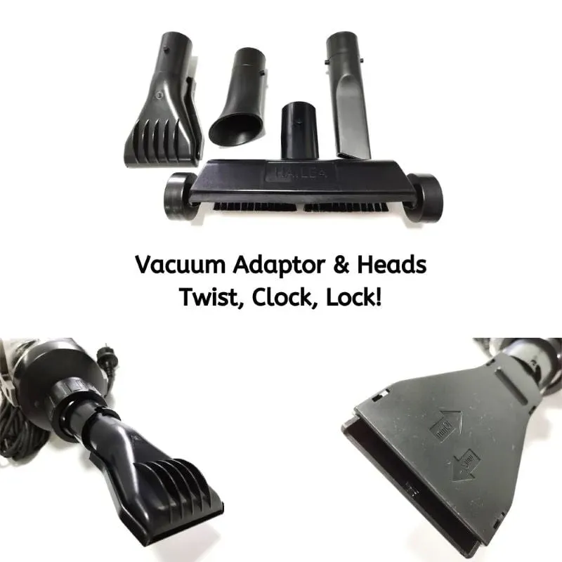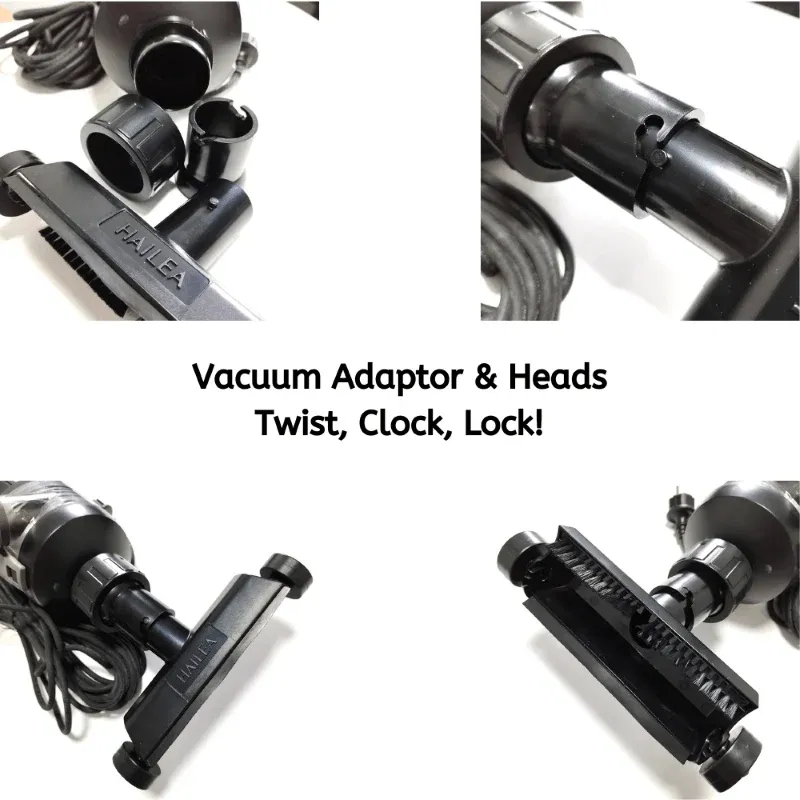 - 4 Different interchangeable vacuum heads utilizing a Twist and Lock function.