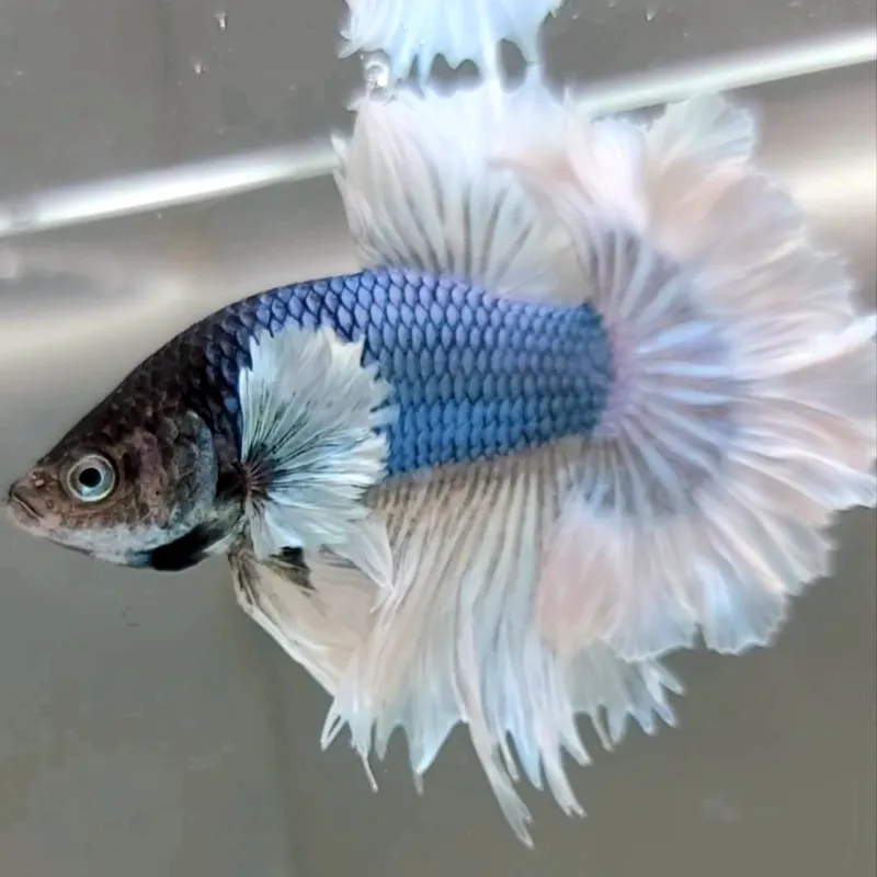 HALFMOON BIG EAR FEATHER TAIL BLUE METTALIC BUTTERFLY RARE BETTA FISH