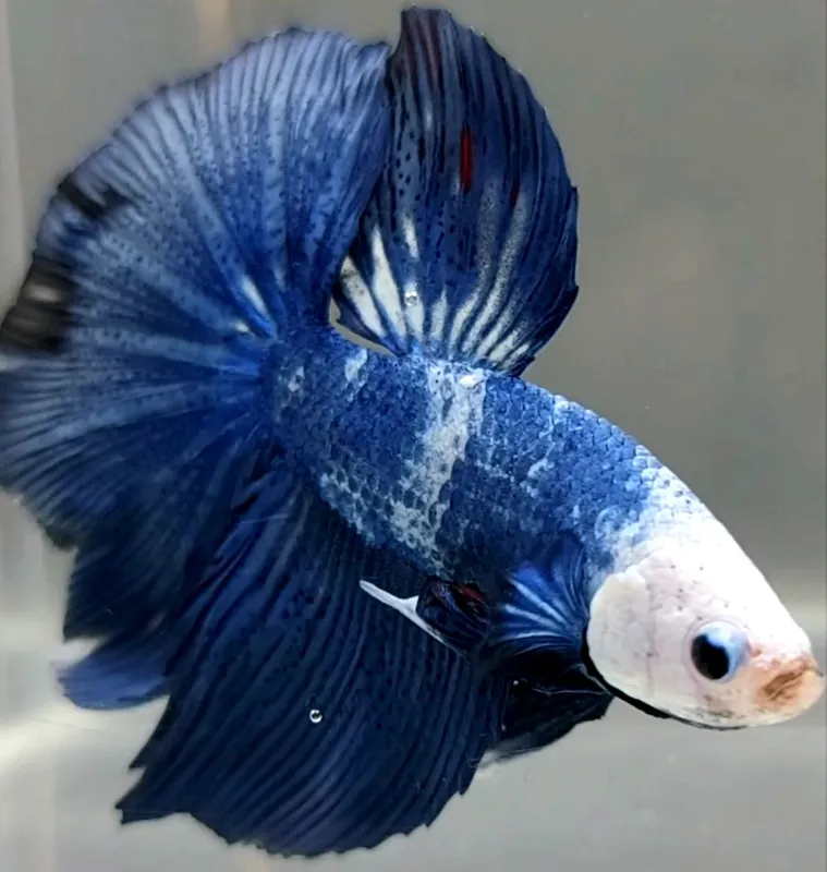 HALFMOON BLUE PANDA WHITE FACE UNIQUE BETTA FISH