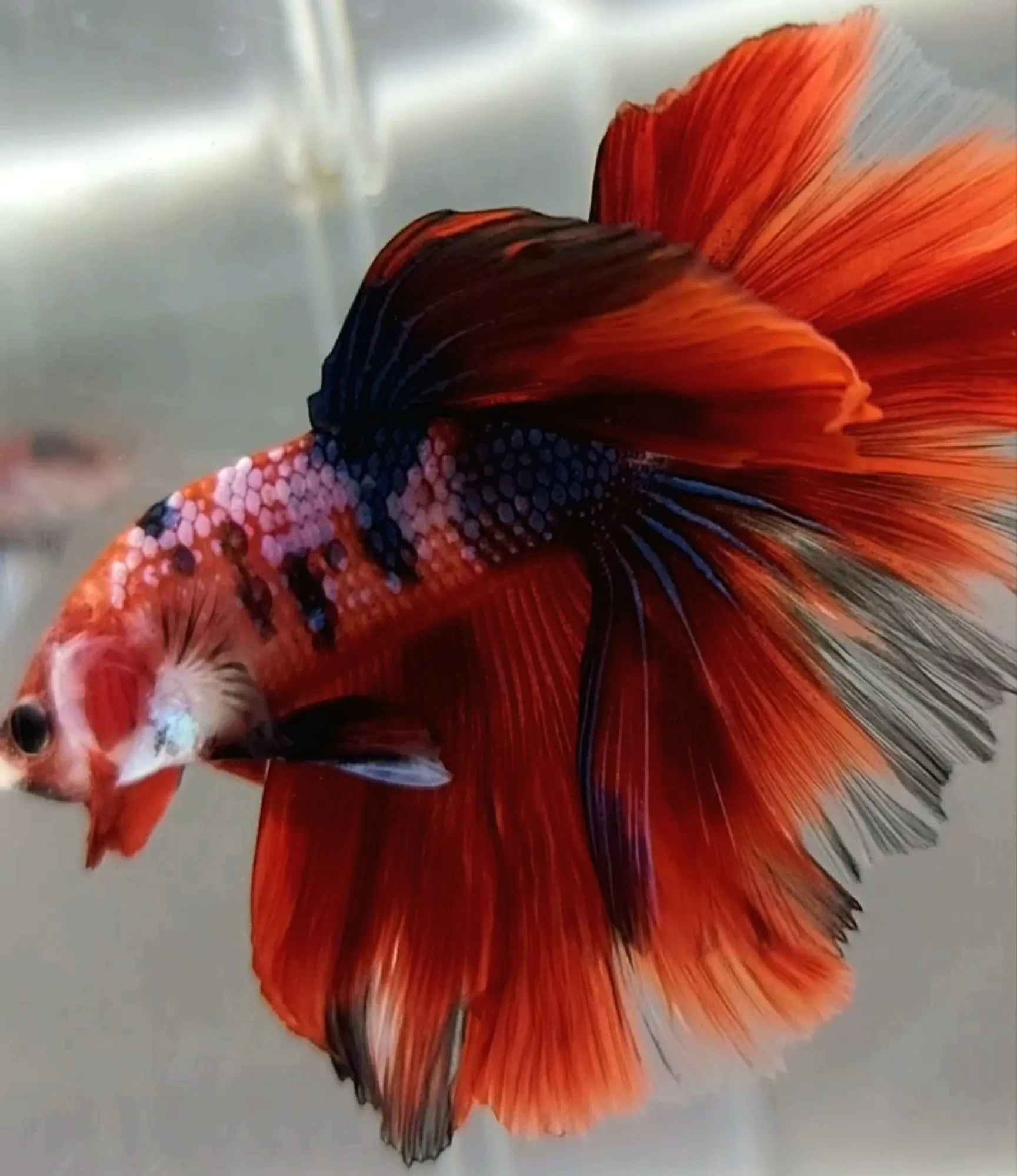 HALFMOON ROSETAIL HELLBOY RED FANCY MULTICOLOR RARE BETTA FISH