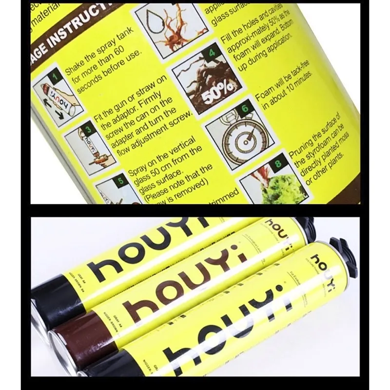 Houyi Expanding Foam is a high tech material specially developed for ecological landscaping. This material will be expanded and cured in the presence of moisture in the air. It is equipped with a plastic adapter, which makes scape easy and more convenient, greatly improving the user's control.