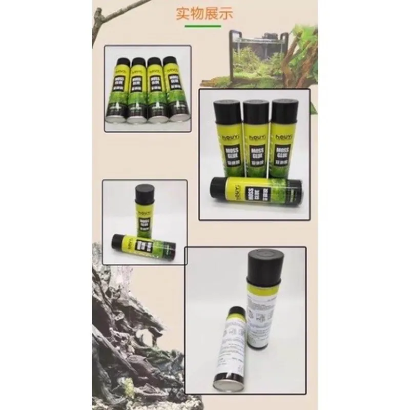 HOUYI Terraium moss glue used to created moss wall, stick moss onto wood, rock and etc in the tank. Save the hassle of sticking the moss bit by bit. Highly increase the efficiency by spraying the glue on the desire surface and paste the moss at the surface. It also helps to prevent the moss from being rotten and created breathiness of the moss root.