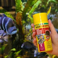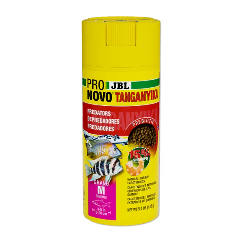 Give your fierce cichlids a treat with JBL Pronovo Tanganyika Grano M, their new favorite meal! This premium granulated food is packed with natural ingredients like salmon and shrimp, ensuring vibrant colors and happy bellies. Its unique prebiotic formula supports healthy digestion, meaning cleaner water and fewer algae woes in your tank. Watch your predatory pals thrive with this highly accepted, nutrient-rich staple!| Food Type | Granulated Sinking Pellets |