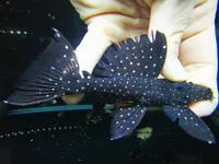 With high contrast black and white markings and large dorsal and caudal fins, the Galaxy or Vampire Pleco is a popular species typically originating from the Orinoco drainage in Colombia. A similar, possibly related species is found in the Tocantins River in Brazil. Like most plecos in the genus Leporacanthicus, the L240 are primarily carnivores, and prefer protein rich foods.