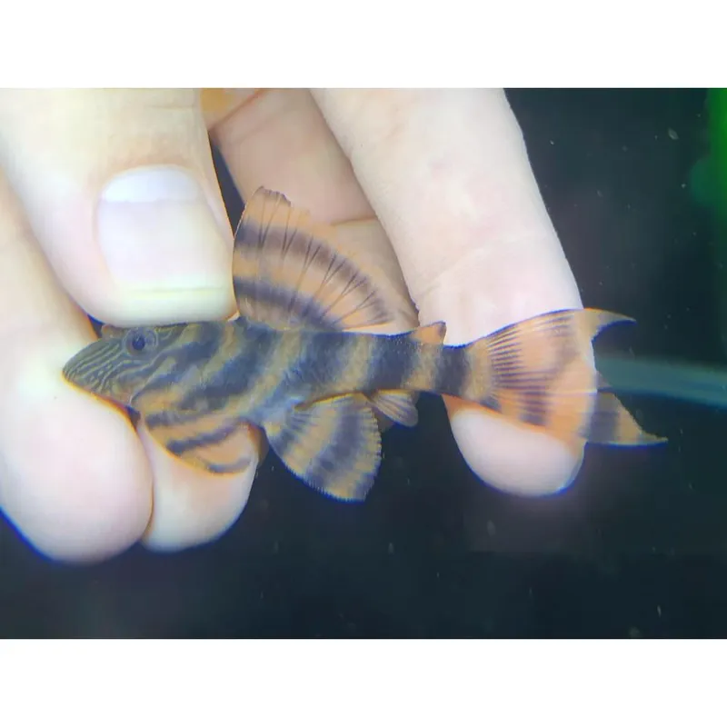 Unique Tiger-Like Patterns: The L397 Alenquer Tiger Pleco is known for its captivating patterns. Its body features a stunning combination of dark stripes and vibrant orange or red patches, resembling the majestic appearance of a tiger. These distinct markings make the L397 pleco a standout species in any aquarium.