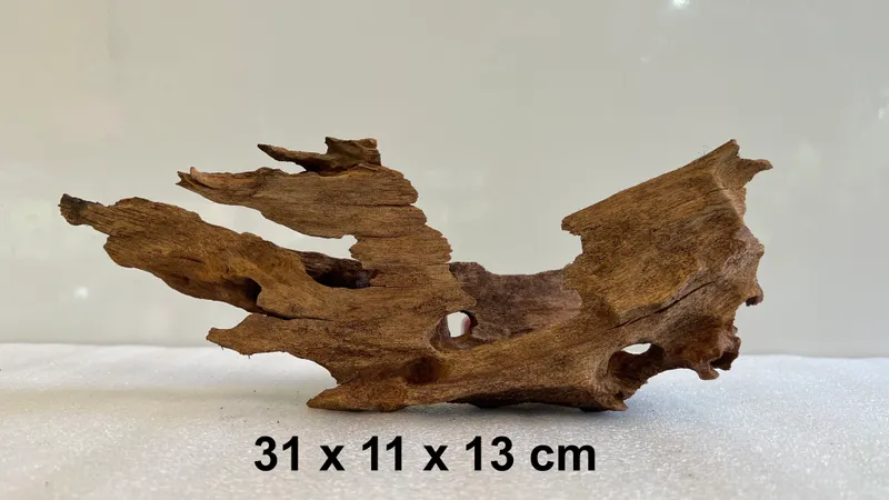Malaysian driftwood is the root/trunk section of ebony trees found in dense forest of Malaysia where the trees are indigenous. This random assortment of trunk pieces are dense, dark and irregular shaped. The colour of the wood is dark brown with black streaks. Malaysian wood is a popular choice for aquariums because, unlike other types of driftwood, Malaysian wood will instantly sink. Not only is Malaysian wood aesthetically striking but it also provides a number of benefits to both the enclosure as well as its inhabitants. Malaysian driftwood is one of the most popular vivarium woods to use in any setup: paludariums, ripariums and terrariums. The driftwood has already been thoroughly cleaned and we ship them prepared for aquarium use.