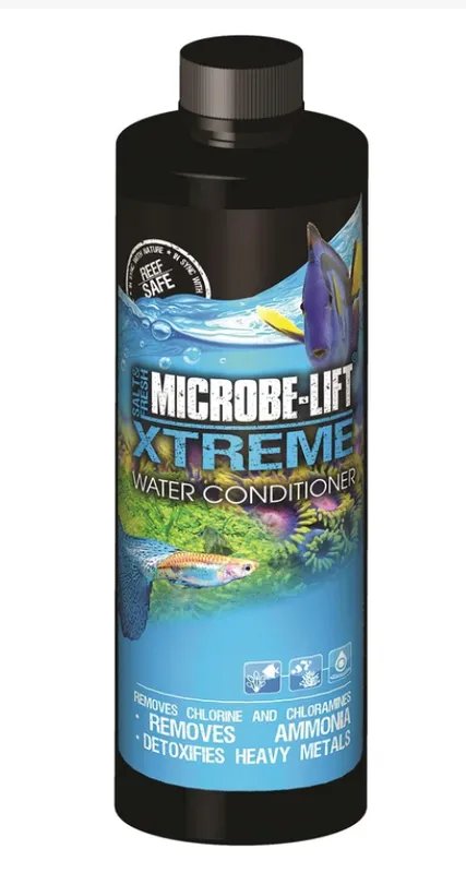 MICROBE-LIFT/XTreme is a full-function water conditioner in a single product. It has been formulated to condition new water (instantly “ages”). It should be used when setting up a new pond or aquarium, making water changes, when adding new fishes, invertebrates, amphibians or plants.