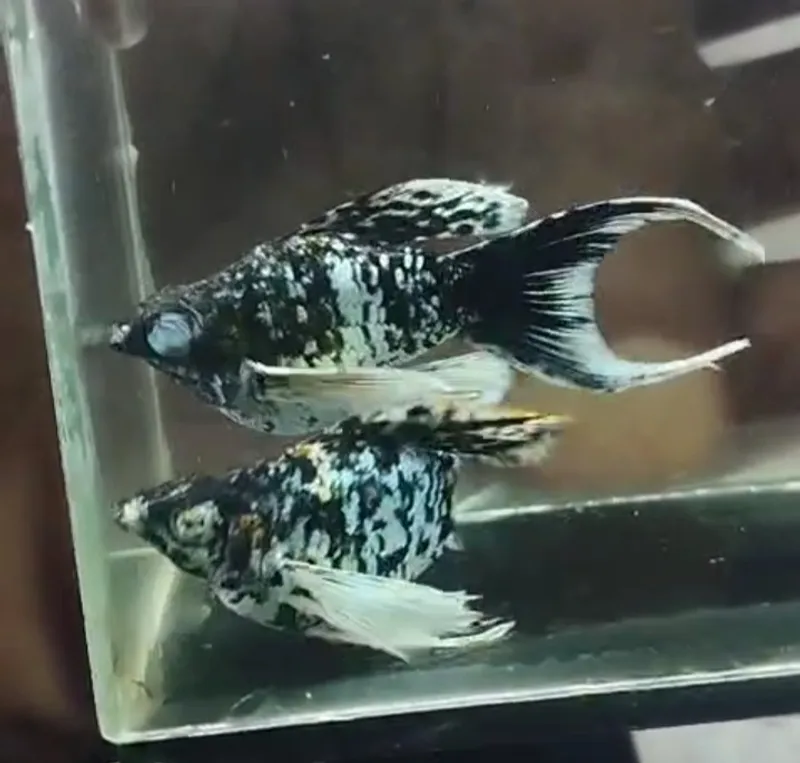 This is a new type of molly gene and is still very rare. Here it is called molly zebra marble crystal eye