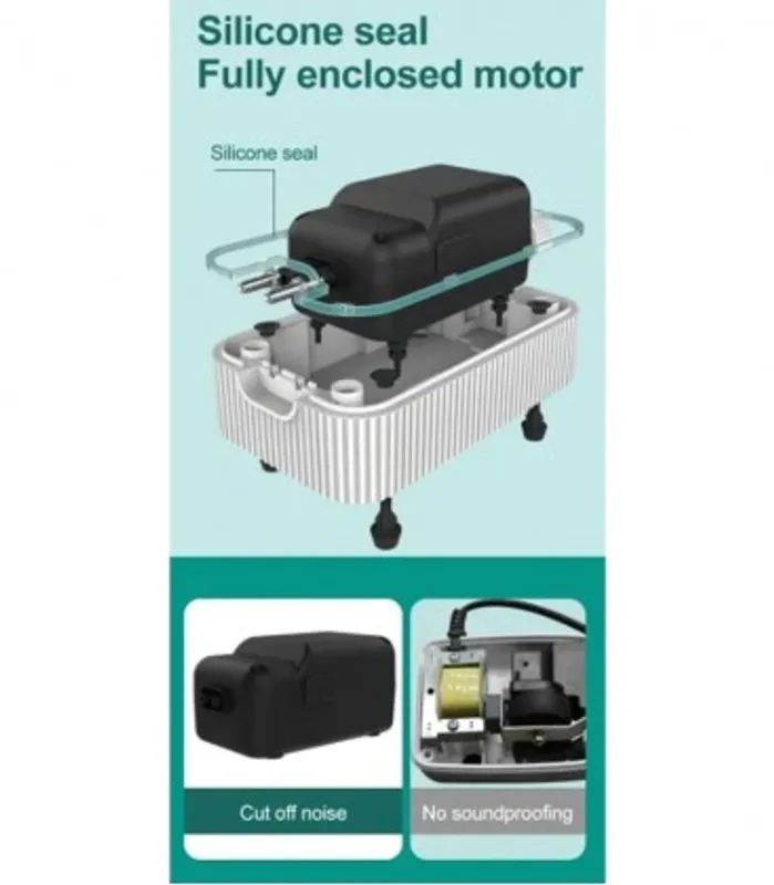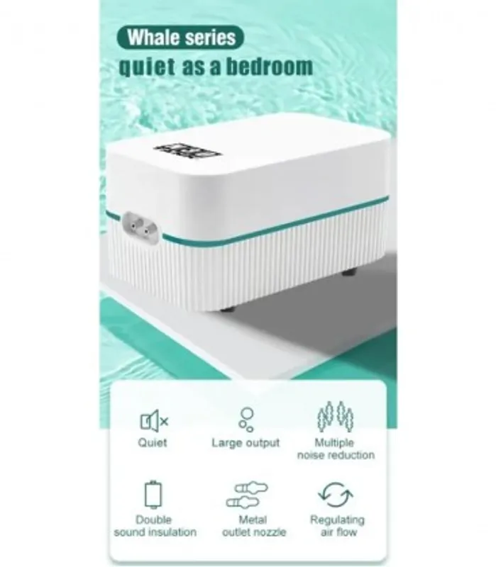 This is a super silent aquarium air pump with adjustable air flow and metal dual outlet. Experience whisper-quiet operation with this advanced aquarium air pump, designed for a peaceful environment.