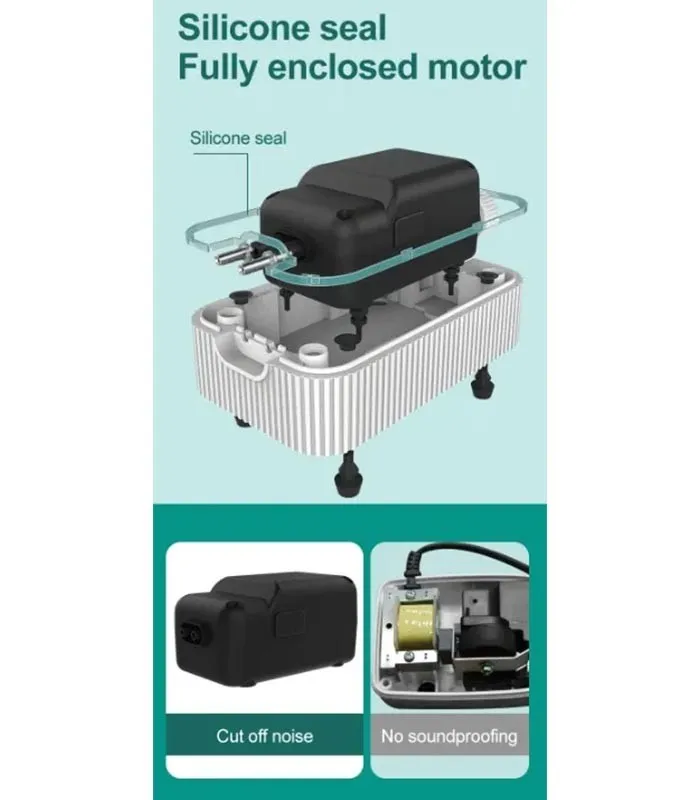This is a super silent aquarium air pump with adjustable air flow and metal dual outlet. Experience whisper-quiet operation with this advanced aquarium air pump, designed for a peaceful environment.