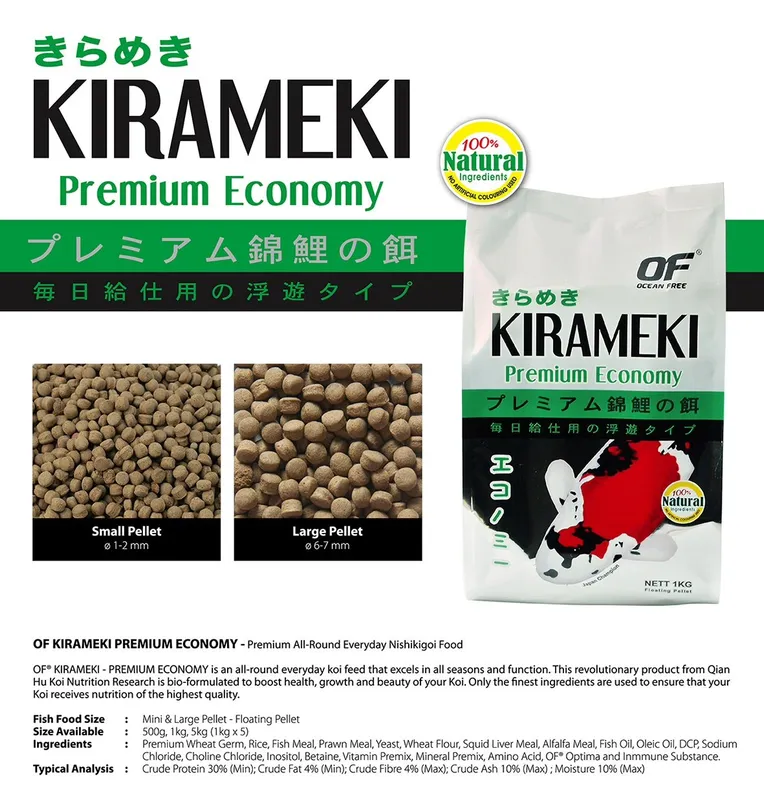 - Kirameki Koi Economy is an all-round everyday Koi food that excels in all seasons and function.