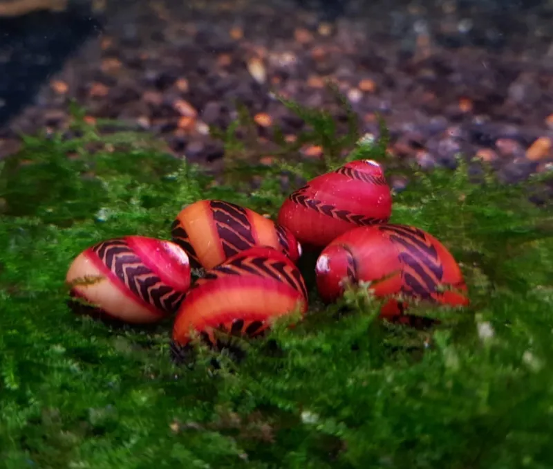 The Red Nerite Snail, scientifically known as Neritina natalensis var. sp. "Red," is a captivating freshwater snail species admired for its striking red and black shell pattern and beneficial cleaning abilities. Here's everything you need to know about caring for and keeping Red Nerite Snails in your aquarium: