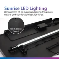 The RIPPLES PREMIUM AQUARIUM is a beautiful and sleek aquarium ideal for all homes and offices. The long slim tank design allows your fishes to swim comfortably from one end to another, and at the same time doesn't take up a lot of table space. RIPPLES PREMIUM AQUARIUM also comes complete with an energy saving Sunrise LED Light as well as a efficient corner filter that helps to maintain clean water conditions.
