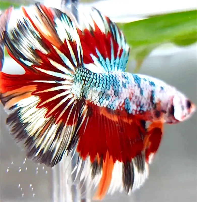 XL HALFMOON ROSETAIL WHITE COPPER MULTICOLOR PATTERN BETTA FISH