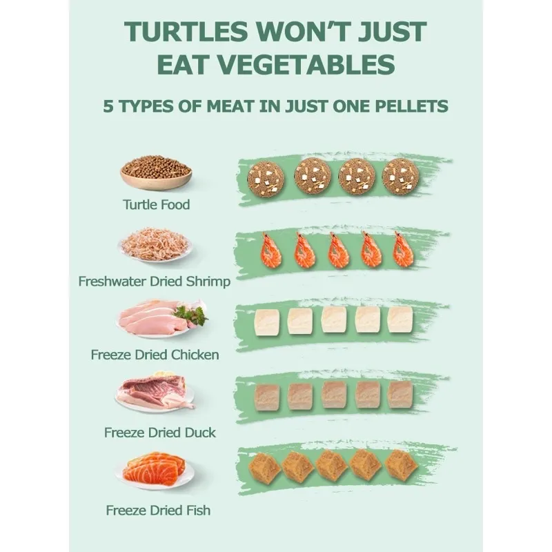 4.Contain 5 types of meat turtle love. Fresh meat is high in calcium & nutrition, rich in natural vitamin A, E & D3