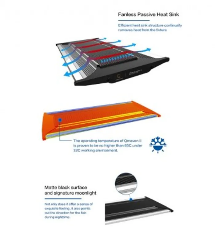 QMaven Series II (2nd generation QMaven) lighting is the next generation superior aquarium lighting. The IP67 waterproof-certified QMaven Series II lighting is moisture, dust, splash resistant that increases the reliability of the electronics and QMaven Series II is easy to clean without risk of water damage.