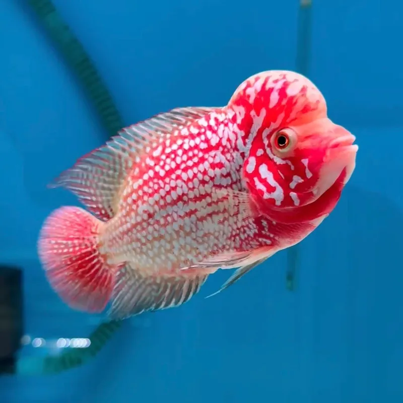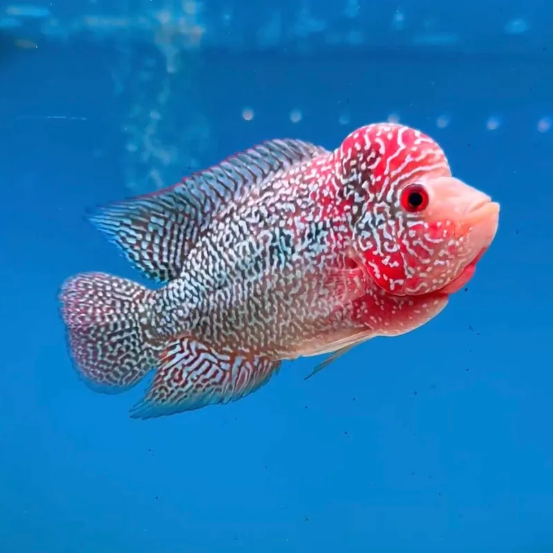 The flowerhorn fish is a striking hybrid cichlid and has a distinctive lump on its head. This flowerhorn cichlid fish can grow up to 12 inches and requires a spacious tank with clean water to thrive. They're territorial and need regular feeding and proper tank maintenance to stay healthy. If you're looking for a bold addition to your aquarium, you can easily find flowerhorn fish for sale at FishyHub.